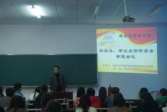 为向同学们普及消防安全知识,提高消防安全意识,2016年3月31日下午三点,2138cc太阳集团“年级长、专业长消防安全专题会议”在学院楼101顺利开展。此次会议由我院党委副书记任源钢主讲,全院辅导员、各年级长、专业长和生活委员出席了本次会议。