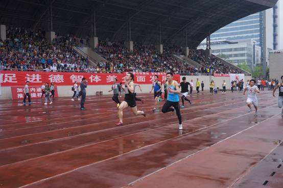 在学生组比赛首战——男子100米决赛中,我院就获得了该场比赛前三名的好成绩。紧接着,我院又获得了男子1500米决赛的第一名和第七名、男子200米的第一名和第二名、男子跳远的第一名和第二名、男子500米的第二名和第七名、男子4X100米和4X400米接力的第一名、男子3000米的第二名以及20*60米迎面接力的第一名。