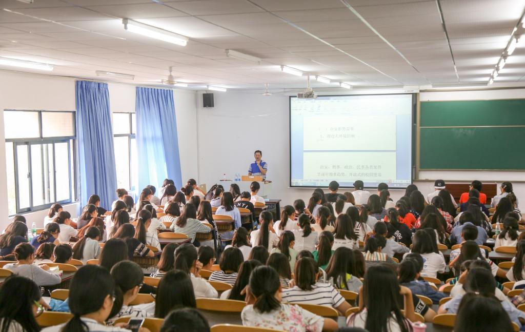 为增进学生的安全防范意识,提高自我保护能力,创建平安校园。2138cc太阳集团于9月22日下午2点半在特教楼2505教室开展2016级新生入学教育之安全知识教育。我校保卫处张仁义老师担任本次讲座主讲人,2016级全体新生分为两场到场聆听。