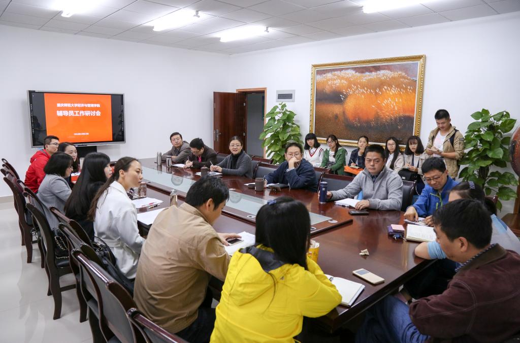 分党委书记税强主持会议。5位辅导员和4位班主任结合年级或班级实际情况,对本年级的工作目标、工作思路、工作经验及特色工作逐一进行了介绍和交流,随后,与会人员就学风建设、制度建设、队伍建设等方面对学生工作的开展进行研讨,为学生工作与教学工作协同发展提出切实可行的建议和意见。2015级辅导员唐爽认为,学生培养是从大一到大四的连续性培养的过程,辅导员要及时针对低年级学生暴露出来的问题进行分析和处理,为后续的学生工作奠定基础。2015、2016级经济学一本班主任冉亚清老师介绍到,学生工作重在抓习惯、抓学习、抓思想,具体来讲就是要加强学生的时间管理能力,引导学生把重心放在学习上,帮助学生建立起在能力、目标、道路上的自信。研究生班主任岳晓峰老师表示,学生工作要“多问”“多念”“多催”,全方位地关心学生。与会人员还针对学生工作当中存在的问题和不足进行了分析和探讨,如就采取何种举措切实加强学风建设、如何培养和管理学生干部队伍、如何把国际班学生在国外学习的正能量传递给国内学生等问题展开了激烈讨论。参会学生代表也结合我院学生的实际学习情况和培养需求,对学院学生工作的开展提出了宝贵的建议。