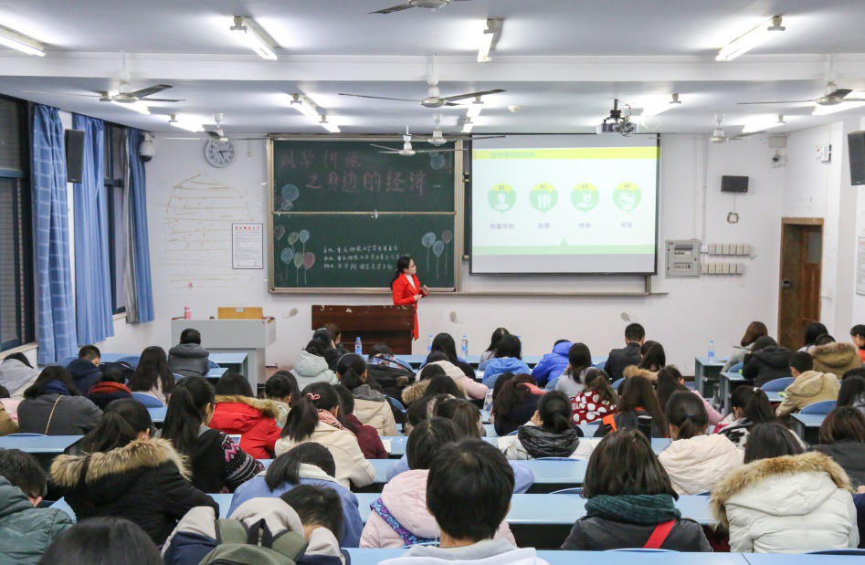 下午四时许,讲座在掌声中拉开帷幕。田女士围绕“身边的货币、价格、投资与理财以及财政与税收”这四个方面展开论述,对货币的发展过程、影响价格的变化因素、投资与理财的优缺点、财政收入与支出的具体形式等内容进行了详细的阐述。“经济就在我们身边,无处不在,无时不在。多一点经济意识,多一分安全保障”是田老师对学生的谆谆教诲。