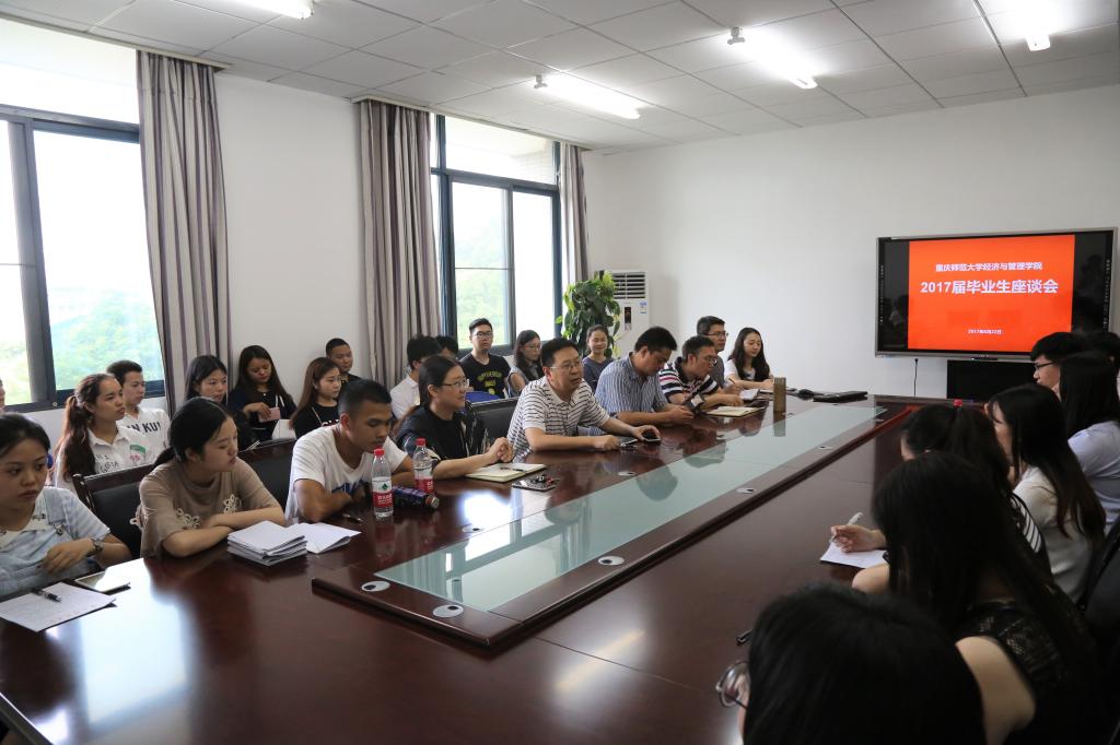 2017年6月22日下午四点半,我院在学院楼311会议室召开2017届毕业生座谈会。2138cc太阳集团党委书记税强、院长田盈、副院长陈道平、党委副书记任源钢、团总支书记朱旭森、毕业生辅导员张莉以及35名毕业生代表出席本次会议。