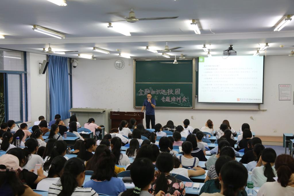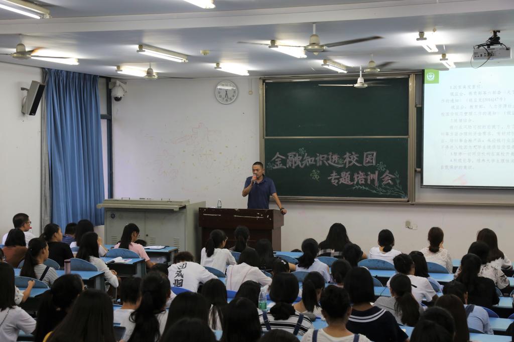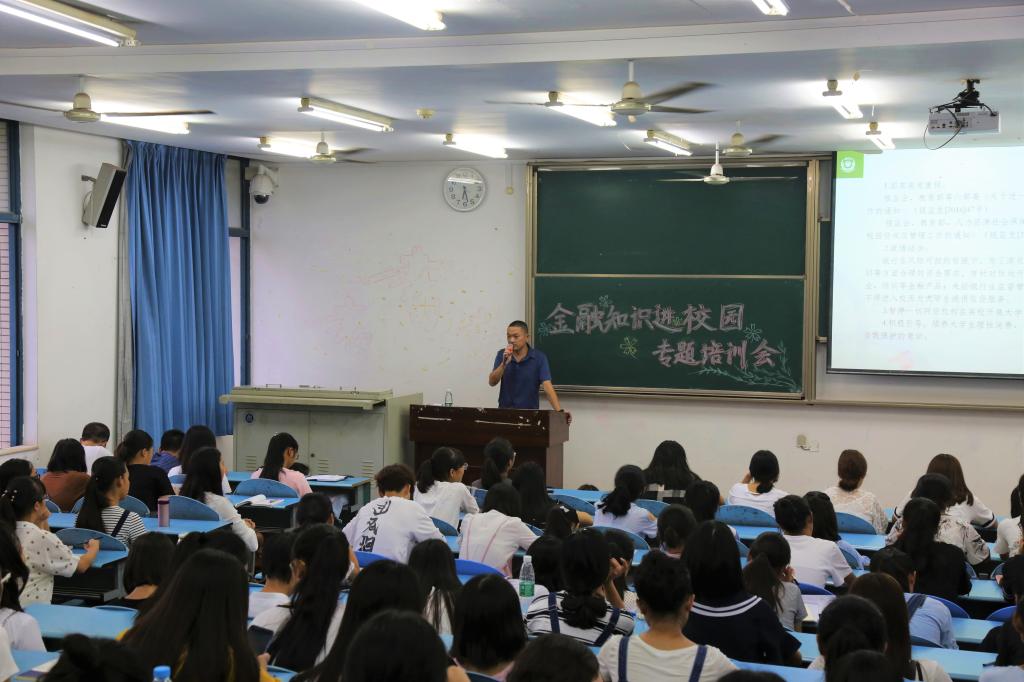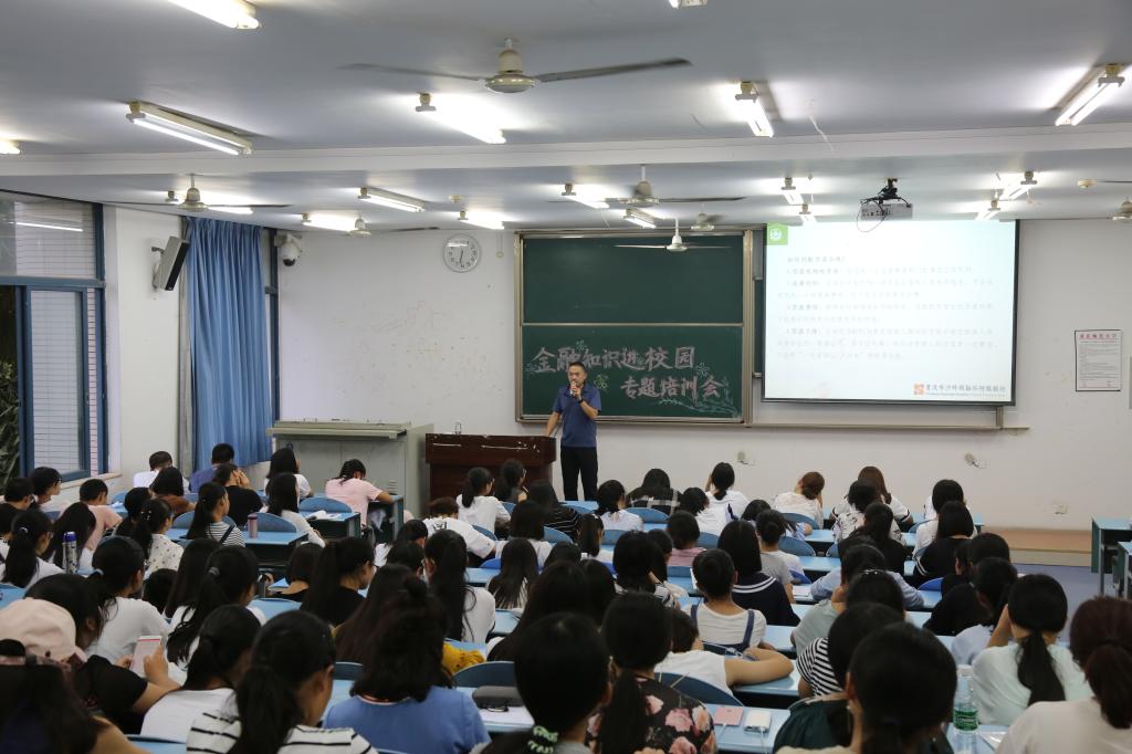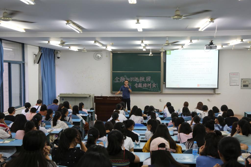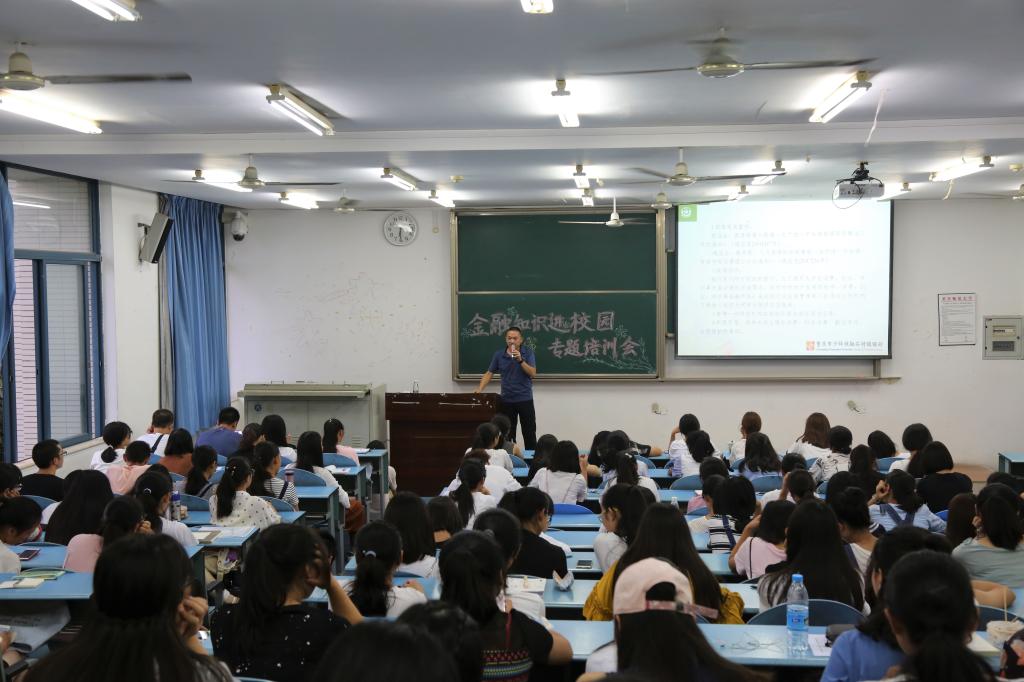 为响应2017年重庆市“送金融知识进校园”活动的号召,2017年9月17日星期日晚上,我院于弘德楼15302举办金融知识进校园专题培训。我院大一新生均出席本次培训,主讲人为我院校企合作单位沙坪坝融兴村镇银行对接负责人李旸。