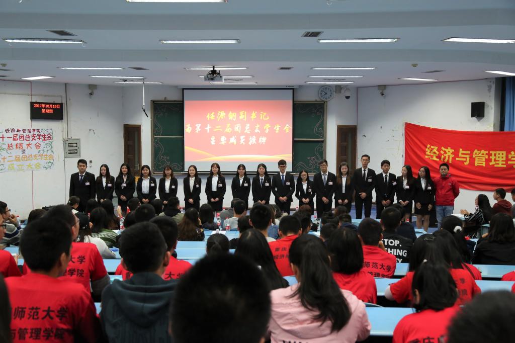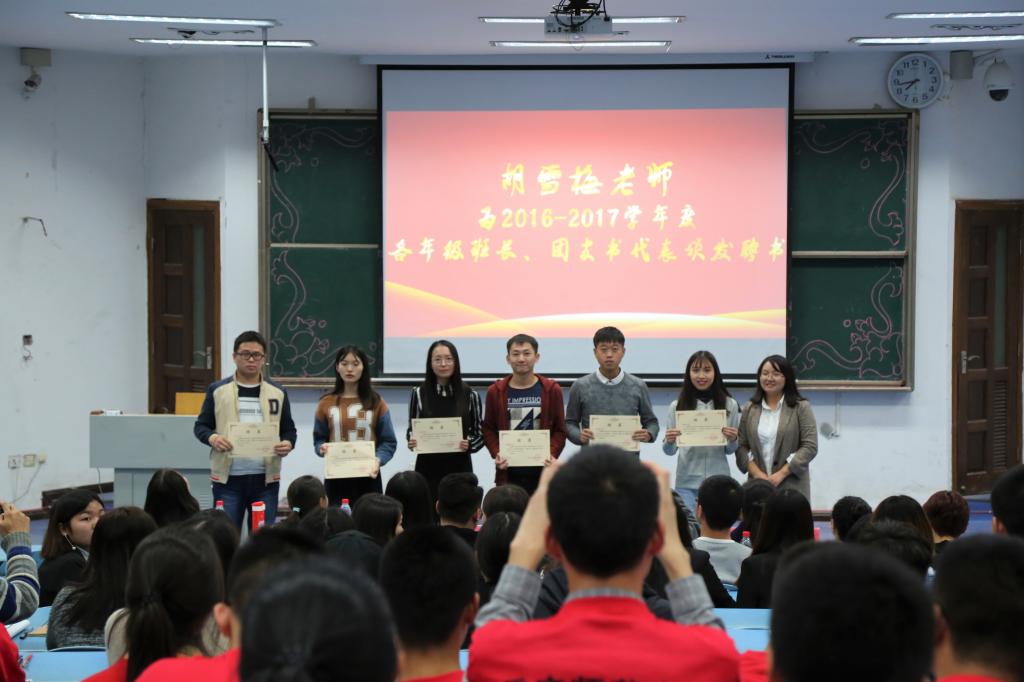 2017年10月19号晚7点,2138cc太阳集团第十一届团总支学生会总结大会暨第十二届团总支学生会成立大会于弘德楼15105教室隆重举行。2138cc太阳集团党委副书记任源钢、团总支书记朱旭森出席大会,大会邀请其他各兄弟学院学生会干部参观交流,学院学生辅导员胡雪梅、唐爽、罗姝、向薪蓉、张莉和我院各年级班长、团支书代表以及第十届学生会部分成员参加大会。本次大会由十二届学生会主席团成员何丹、肖攀主持。