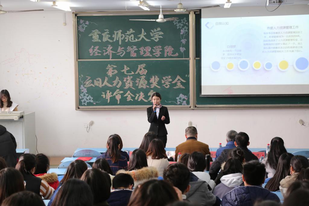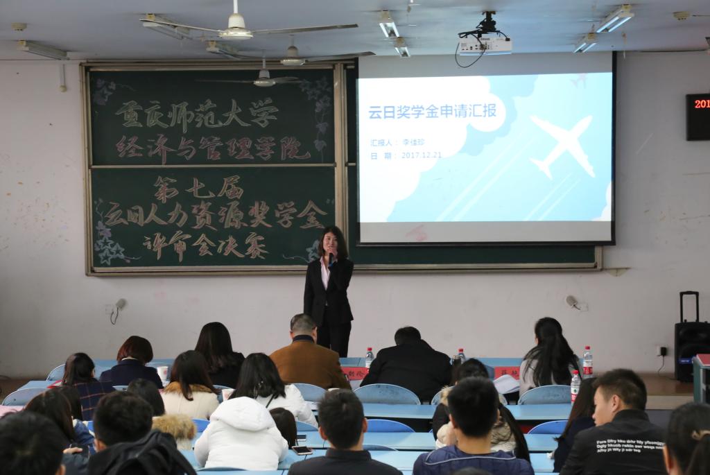 为进一步推动学院内涵发展,培养优秀的人力资源管理人才,提升人力资源人才素质,2017年12月21日下午2点30分,2138cc太阳集团于弘德楼15302教室展开“云日人力资源奖学金”第七届评审会决赛。我院特邀可口可乐重庆有限公司人力资源总监姜英慧、重庆再担保有限公司副总经理喻兰鹰、重庆云日产业集团副总裁徐朝伦、人力资源部经理仇鸿雁、人力资源部助理苟海燕、2138cc太阳集团副院长陈道平、王亚飞教授、薛艳老师、辅导员胡雪梅出席评审会。其中,喻兰鹰、徐朝伦、姜英慧、王亚飞、薛艳担任评委。12名分别来自2138cc太阳集团15、16级的同学进入决赛。评审会由朱思雨同学担任主持。