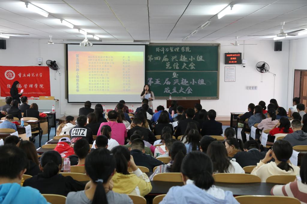 2018年10月11日星期四下午15:00,我院于特教楼T2410教室开展第四届兴趣小组总结大会暨第五届兴趣小组成立大会,我院党委副书记任源钢和辅导员向薪蓉、柴风梅等人及第四、五届兴趣小组成员共同出席本次大会。