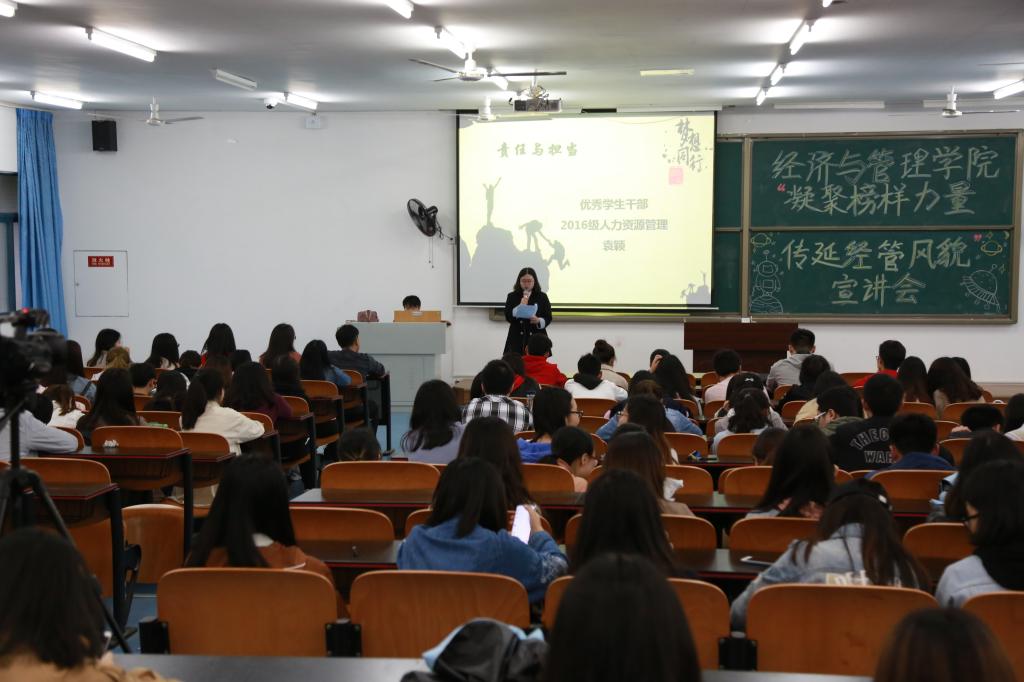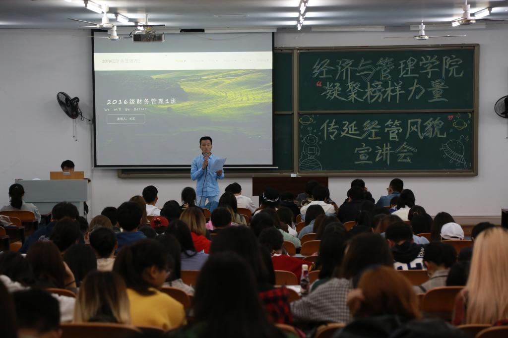 2019年4月14日,2138cc太阳集团于T2507举办“凝聚榜样力量,传延经管风貌”第四场学生先进集体和个人宣讲会。