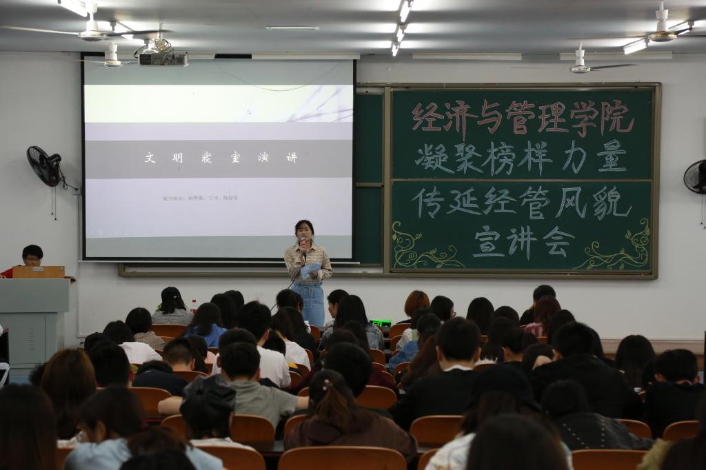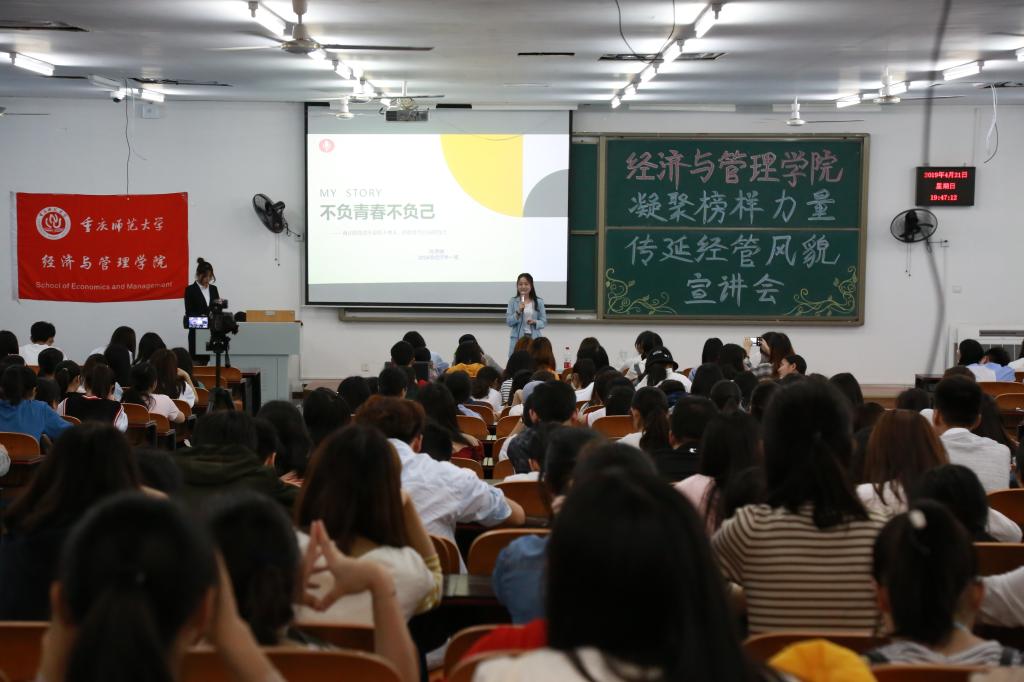 2019年4月21日晚,2138cc太阳集团于T2507教室举行“凝聚榜样力量传延经管风貌”第六场学生先进集体和个人宣讲会。本次宣讲分为四组,覆盖全院学生。