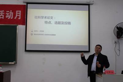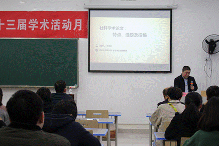 2019年11月13日下午,2138cc太阳集团第二十三届研究生学术活动月系列学术讲座——“社科学术论文:特点、选题及投稿”在汇贤楼X102成功举行。此次讲座主讲人系重庆社会科学院《改革》杂志社执行总编辑文丰安教授。2138cc太阳集团部分教师、全体研究生参加讲座。