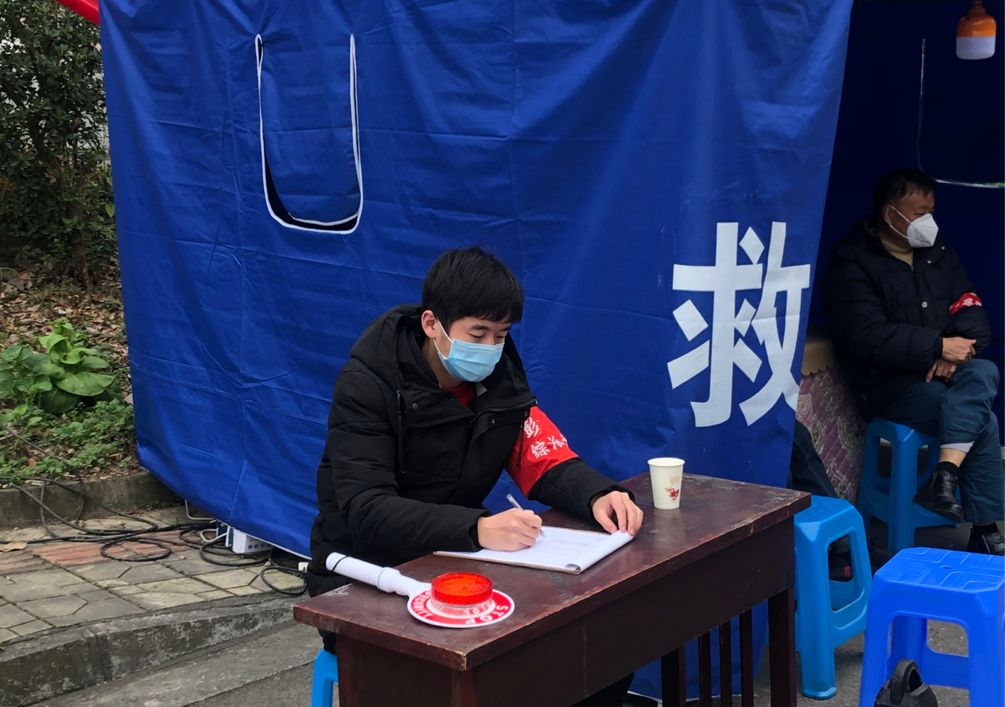 钟逸潇所在的社区是四川省成都市彭州通济镇景山社区。自2月12日起至今,他每天早上七点至中午十二点到社区门口进行外来人员车辆排查、跟随支部进行疫情情况普查、对外地回归人员进行跟踪观察、开展爱心捐款等工作,在做志愿者工作期间,虽然工作繁杂琐碎、费心劳神,但正因如此才让我真正能够理解了抗疫一线工作人员的辛苦与付出!