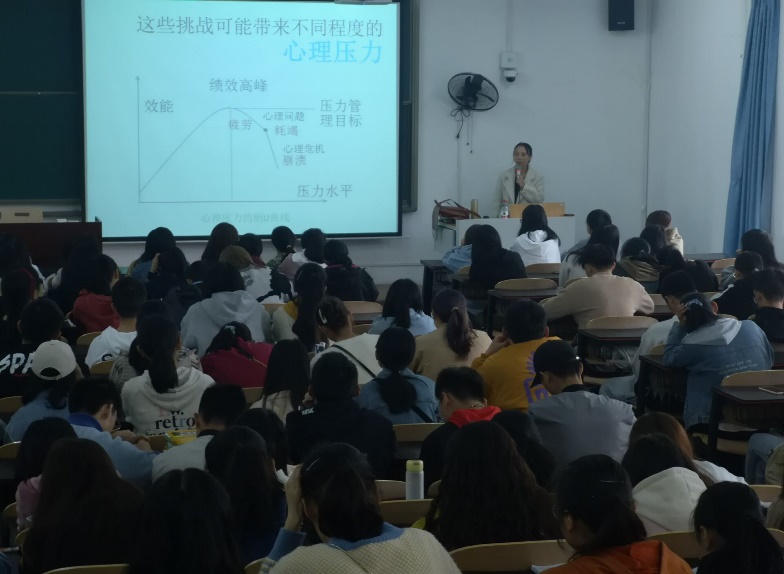 此次讲座由我院辅导员罗姝老师主讲,分别从如何正确认识大学生心理健康、大学生可能面对的心理挑战和压力、警觉心理亚健康七大信号以及应对方式、我校为学生提供的心理健康服务渠道等四个方面进行讲述。