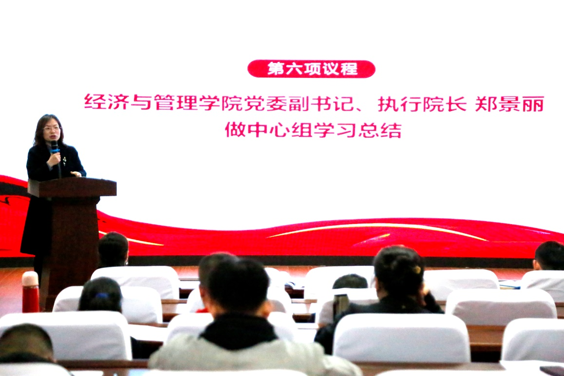 2138cc太阳集团党委副书记、执行院长郑景丽最后做中心组学习总结,她表示今天的党委中心组学习扩大会议对于推动我院样板党支部高质量建设、发挥样板党支部的示范引领作用提出了总的思路和目标方向。下一步,学院将紧密围绕教育部、市教委及学校党委对样板支部建设的总体要求、基本原则、重点任务及考核指标,整合多方力量,形成共识,加大硬件、软件的投入力度,高质量、高标准系统推进我院各级样板党支部建设,并通过样板党支部建设引领学院党建、学科、专业、人才及文化建设,促进学院内涵发展。
