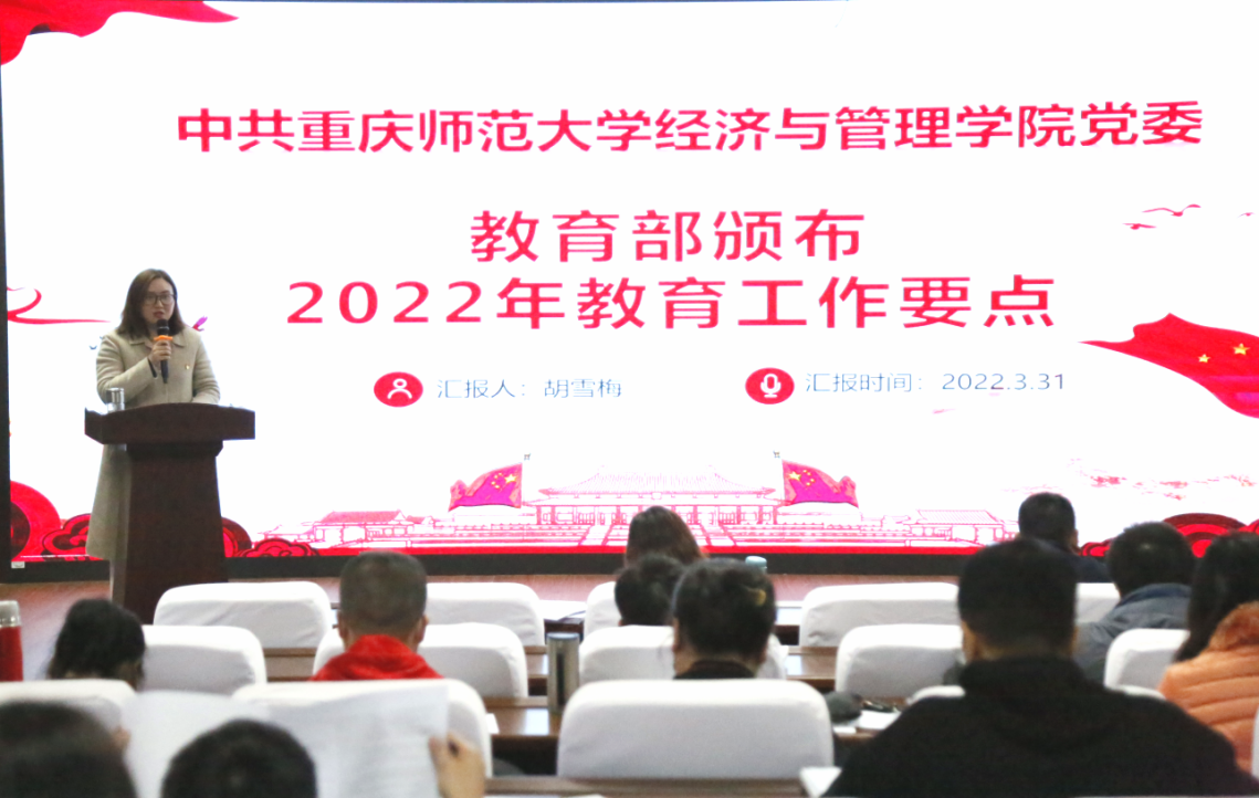 2138cc太阳集团党建工作样板支部、2138cc太阳集团党委学生一支部支部书记胡雪梅领学了《2022年全国教育工作会议精神》,就会议精神进行了解读和分享。我院师生将深入学习贯彻2022年全国教育工作会议精神,立足实际,立足本职工作,落实立德树人根本任务,要在“十四五”教育事业发展规划期间,准确识变、主动求变、积极应变,抢抓机遇、开拓创新,以高质量党建引领育人,以实际行动贯彻落实会议精神。