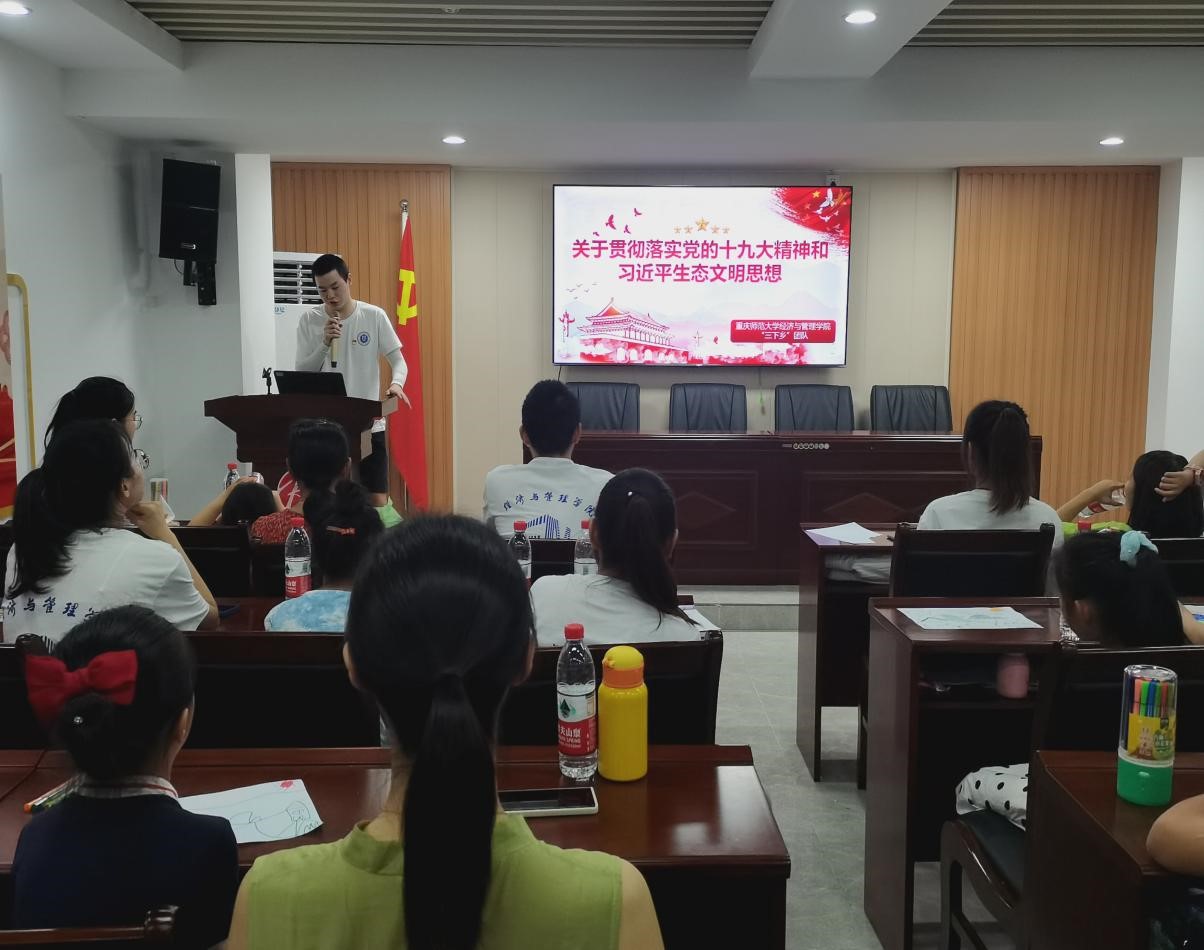 7月15日下午,2138cc太阳集团“扬振兴梦想,展青年担当”乡村振兴实践团于重庆市高新区虎溪街道学智社区开展“习近平生态文明思想”宣讲会。学生党员王建雄就习近平生态文明思想从“为什么建设生态文明”“建设什么样的生态文明”“怎样建设生态文明”三个方面进行宣讲,准确把握思想核心要点,号召大家矢志不渝地做习近平生态文明思想的坚定信仰者、忠实践行者、不懈奋斗者。