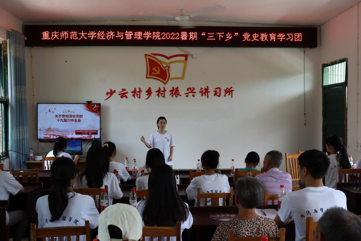 7月17日下午,党史学习教育团与少云村支部委员会联合开展“十九届六中全会”党史宣讲会,少云村30余户村民参与了此次宣讲。会上,驻村干部陈有新主任深入浅出地向学习团成员及村民代表介绍了新时代“少云人”接续传承少云精神的现状、使命和担当;学生党员许丽秀将全会精神宣讲和少云村美丽乡村建设相结合,帮助基层群众增强对国家大政方针和相关政策的理解,助力乡村振兴。与会村民表示深受启发,纷纷表示要与党同心、与国同向,以实际行动推进少云村“巴岳农庄”项目建设。