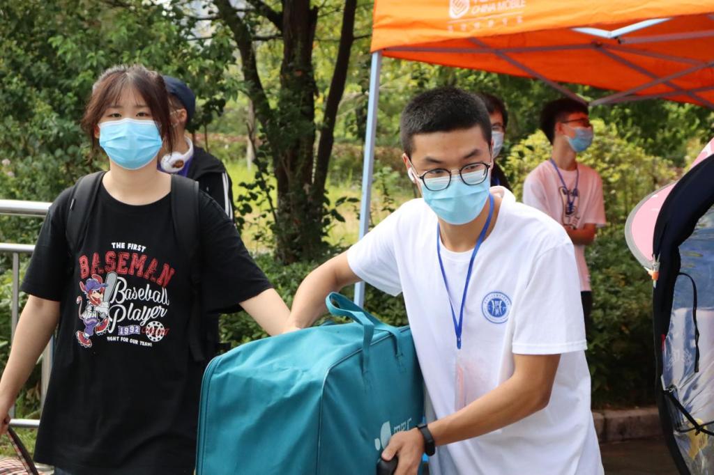 报到首日,虽然天不作美,但我院线上线下的志愿者依旧热情不减。志愿者们冒着大雨帮新生们搬运行李、指引道路、解疑释惑,新生们在学长学姐的亲切带领下有条不紊地完成整个入学手续,志愿者团队保证了每一个到校新生都将报到步骤圆满落实到位。