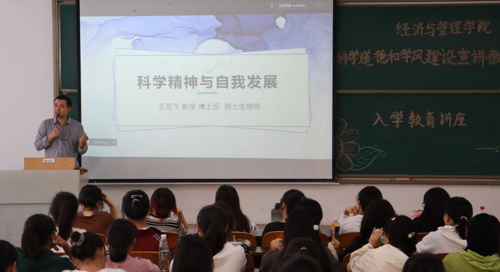 传承精神力量,涵养优良学风。为进一步加强我院学生学风道德建设,我院特邀王亚飞教授于9月29日下午两点半在特教楼2315室,为我院22级新生开展“科学道德和学风建设宣讲教育”入学教育讲座。本次讲座采取线上线下同时进行的方式,我院22级新生悉数到场。