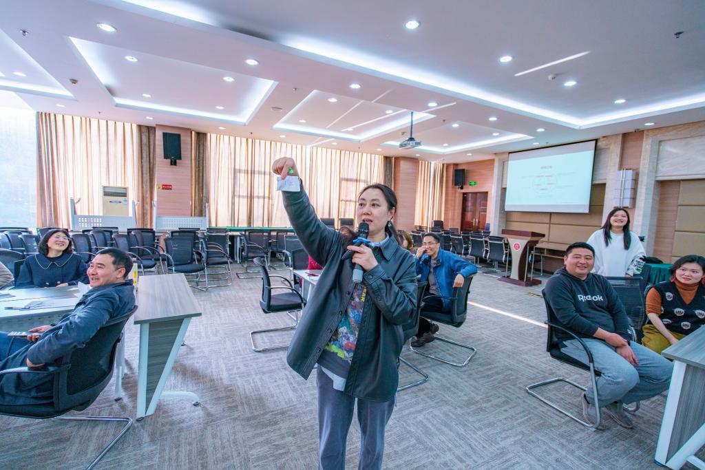 活动以“国王与天使”和“你爱我吗”两个小游戏开场,通过热身小游戏迅速拉近教师之间的距离,营造出温暖轻松的氛围。在欢声笑语中,小游戏“幸福大转盘”和随后的“马兰花开”让教师们在交流中渐渐放开自我,紧紧地“抱在一起”,并认识熟悉自己周围的人。