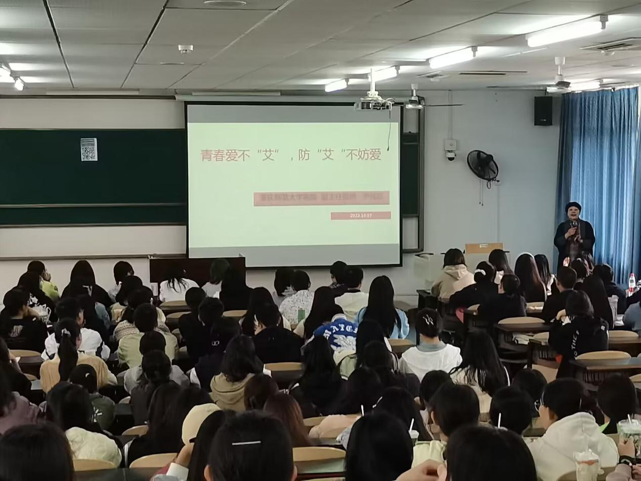 为了提高2023级新生对艾滋病的认识和了解,并引导他们养成良好的生活习惯,2023年10月7日,2138cc太阳集团在特教楼2302教室开展了一场预防艾滋病的宣传教育活动。本次活动由校医院院长尹伟欣进行主讲。
