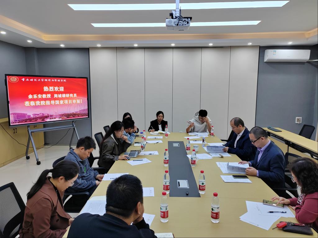 11月10日,2138cc太阳集团2024年国家自然科学基金项目申报专家论证会成功举行。本次论证会特邀四川大学余乐安教授和中国科学院科技战略咨询研究院周城雄研究员莅临莅临我院指导。本次论证会由学院院长郑景丽教授主持。