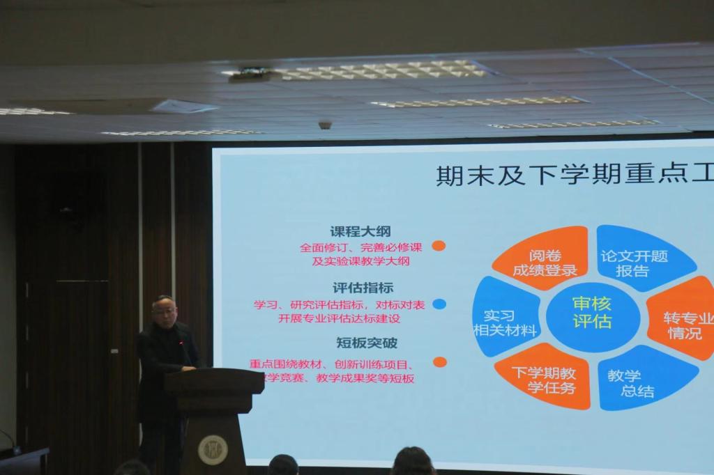 随后郑景丽院长充分肯定了过去一年在全体教职工共同努力下,学院各项工作中取得的显著成果,并对大家辛勤付出表示感谢。郑景丽院长强调了团结协作、创新进取的精神在学院发展中的重要性,提出深化教学改革、加强学科建设、提升科研实力等目标,鼓励全体教职工继续为学院的发展贡献力量,共同创造更加辉煌的未来。
