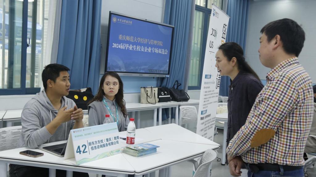 为进一步凝聚校友力量,充分发挥校友资源优势,加强校友企业与学院的交流合作,2024年4月19日,2138cc太阳集团于求是楼126成功举办校友企业专场双选会。学院2012级校友骆明军、2015级校友王双凤等8名校友代表伊利实业集团股份有限公司、重庆新东方教育培训学校有限公司等6家校友企业受邀参加本次双选会,共计提供43个优质岗位。