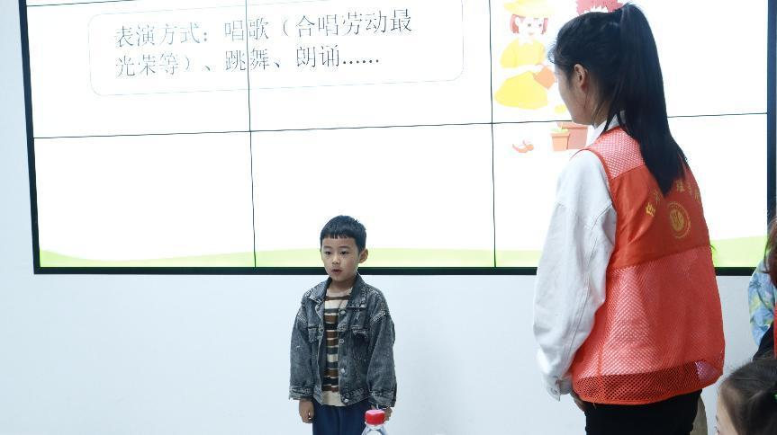 志愿者们通过视频观看和知识讲解相结合的方式,为小朋友们详细讲解了劳动的意义和价值,帮助引导他们更全面的认识劳动节,在日常生活中热爱劳动,树立正确的劳动观念。活动还设置了“五一劳动手工作品DIY”、“老鹰捉小鸡”等游戏环节,在志愿者的组织带领和耐心指导下,小朋友们展开想象,用彩笔描绘着心目中的劳动者的模样,并在团队游戏和才艺展示环节中积极参与团队协作、体验和感知着劳动的意义,用舞蹈、朗诵和歌声传递着对劳动的赞美和敬意,增强了小朋友对劳动重要性和必要性的认知。
