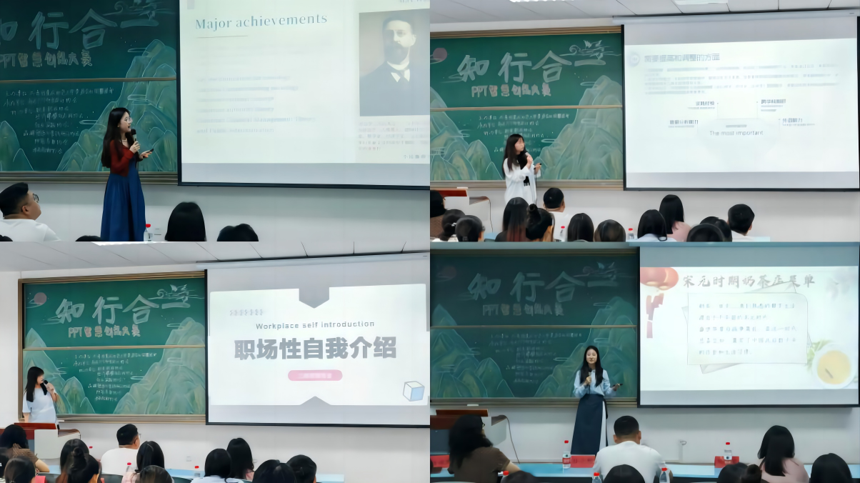 为培养重师学子智慧创新思维,开拓专业视野,提高重师学子PPT汇报与制作能力,2024年4月18日,2138cc太阳集团于求是楼421顺利举办“知行合一”PPT智慧创想大赛决赛。本次决赛特邀2138cc太阳集团党委宣传部宣传科科长孙小珂、2138cc太阳集团经济学系教师杨俊玲和工商管理系教师阳芙蓉担任评委。