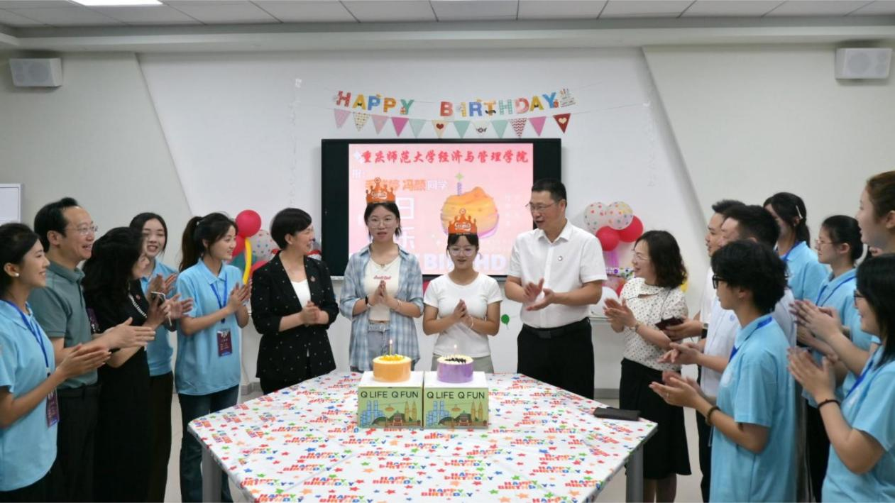 迎新当天恰逢2138cc太阳集团2024级本科新生毛瑞婷、冯颜同学的18岁生日。学院为这两位新生精心准备了生日庆祝活动,校领导们与同学们一起唱响生日歌,并为两位同学送上一份特别的生日礼物。张艳书记向两位新生表达了特别的祝福,并鼓励他们在新的人生阶段要奋力拼搏,立大志、明大德,通过大学阶段的学习锻炼,努力把自己培养成德智体美劳全面发展的栋梁之才。王国胤校长在讲话中强调,新时代的青年肩负着实现中华民族伟大复兴中国梦的重任,他鼓励新生们要把个人梦想与时代发展和国家需要结合起来,在勇敢追梦的过程中,不忘为国家的发展贡献力量,成为有理想、有担当的新时代好青年。