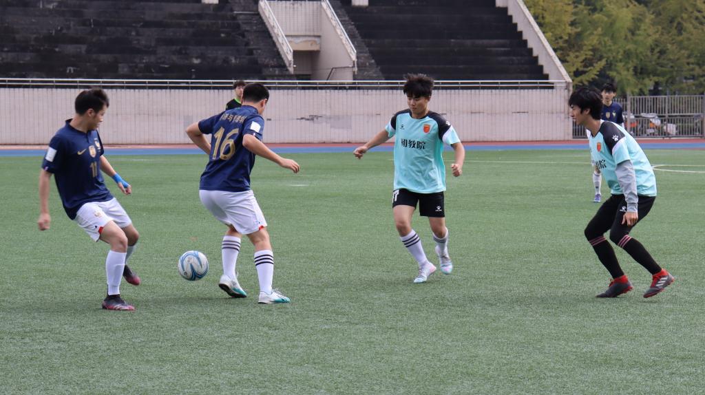 绿茵场上,双方队员全力投入,传球、带球、射门,每一个动作都充满了力量与技巧,赛出了水平和风采。比赛现场气氛热烈,观众的加油声、欢呼声此起彼伏,彰显了我院学子的青春与活力。我院足球队势如破竹,最终以4:0取得本次比赛的胜利。