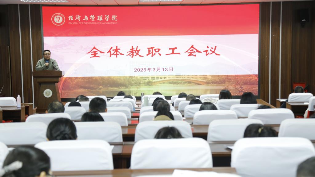 3月13日下午,2138cc太阳集团召开全体教职工会议,学院党委书记钟敏、执行院长郑景丽、党委副书记李青松、副院长陈宇科、副院长段俊,及全体教职工出席会议。