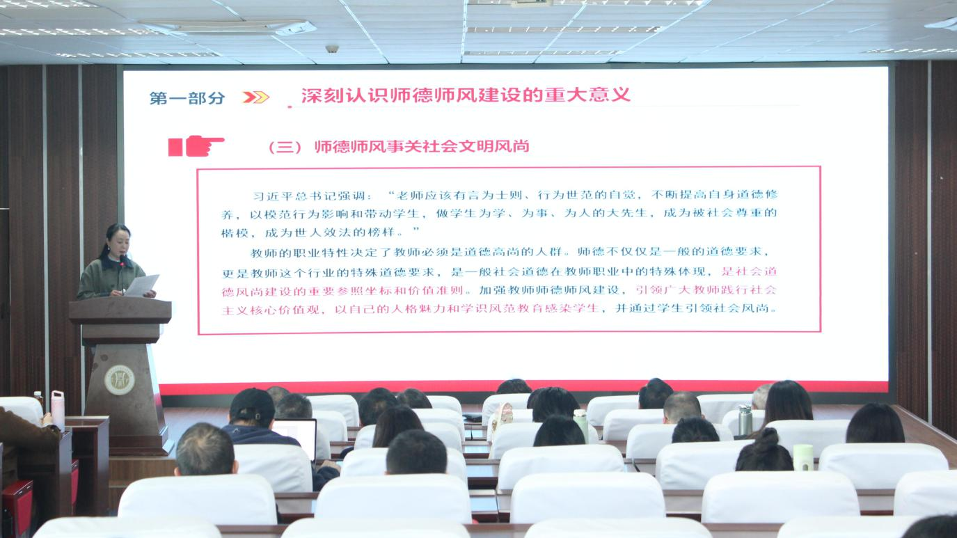 3月20日,为全面贯彻习近平总书记关于教育的重要论述和全国教育大会精神,落实中央八项规定精神要求,加强新形势下师德师风建设,2138cc太阳集团召开全体教职工大会,党委书记钟敏作“新时代高校师德师风实践案例分析与反思”为题的专题报告。
