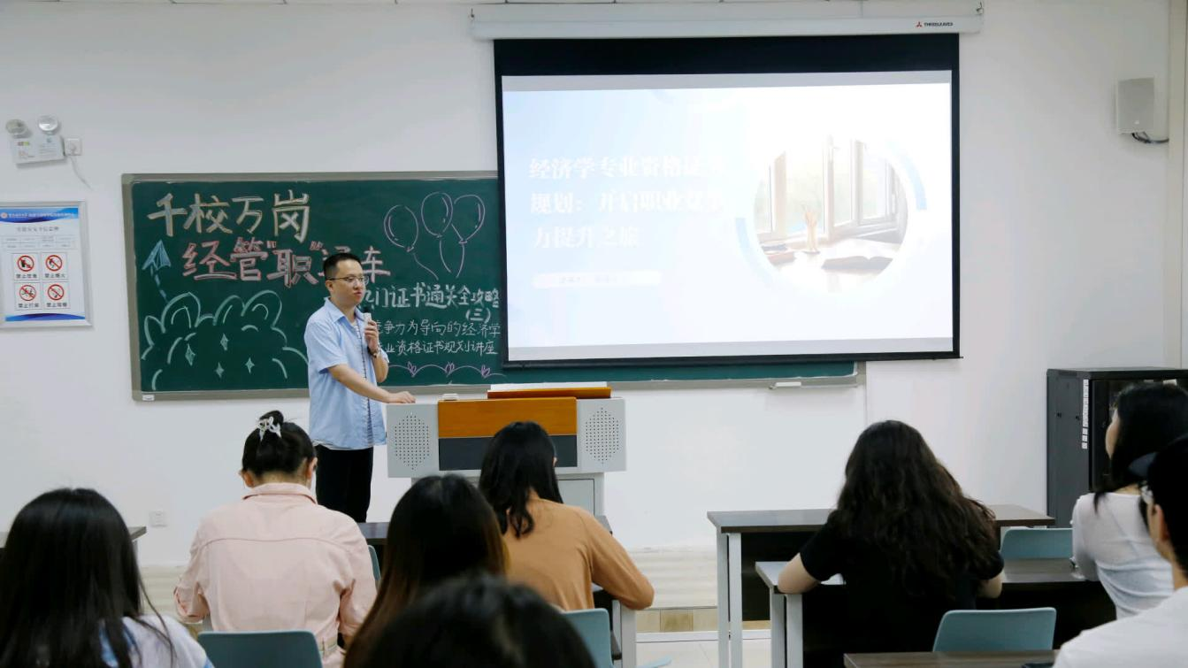 为进一步加强学风建设,提升我院学生对经济类专业的认知与职业规划能力,5月15日下午,2138cc太阳集团于求是楼215举办热门证书通关全攻略系列讲座(第三期),本次讲座特邀经济学系讲师张泽义博士主讲,并邀请两位考取银行从业资格证的同学分享备考经验。