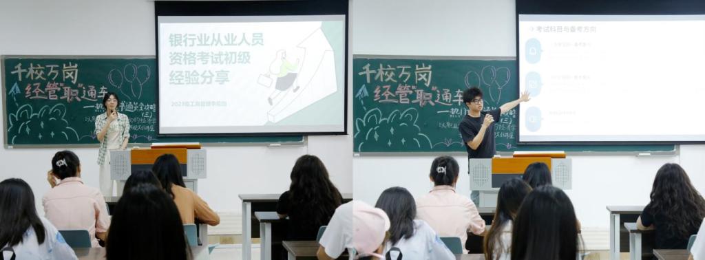 李伦怡、周鹏辉结合自身备考银行从业资格证书的经历,从考试内容、时间安排、备考阶段建议、辅助工具与学习资源选用等方面为同学们进行了详细的分享。同时,也提醒同学们要理性看待考证,避免盲目跟风,应根据自己的职业规划和实际情况选择适合自己的证书,并制定科学的备考计划。