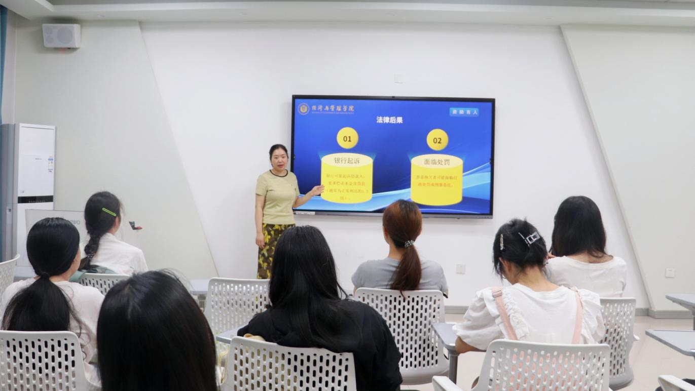 会上,刘炜婳介绍了国家助学贷款的基本情况与申请条件,并详细讲解了在校期间及毕业后的还款政策,引导同学们认识诚信还贷的深层价值。她强调按时履约是个人诚信品格最直接的体现,关联到宝贵的个人信用记录。谈及不还助学贷款的影响,刘炜婳老师着重强调逾期还款的后果,恶意拖欠还可能面临行政或刑事责任,让同学们更进一步认识到诚信还贷的重要性。