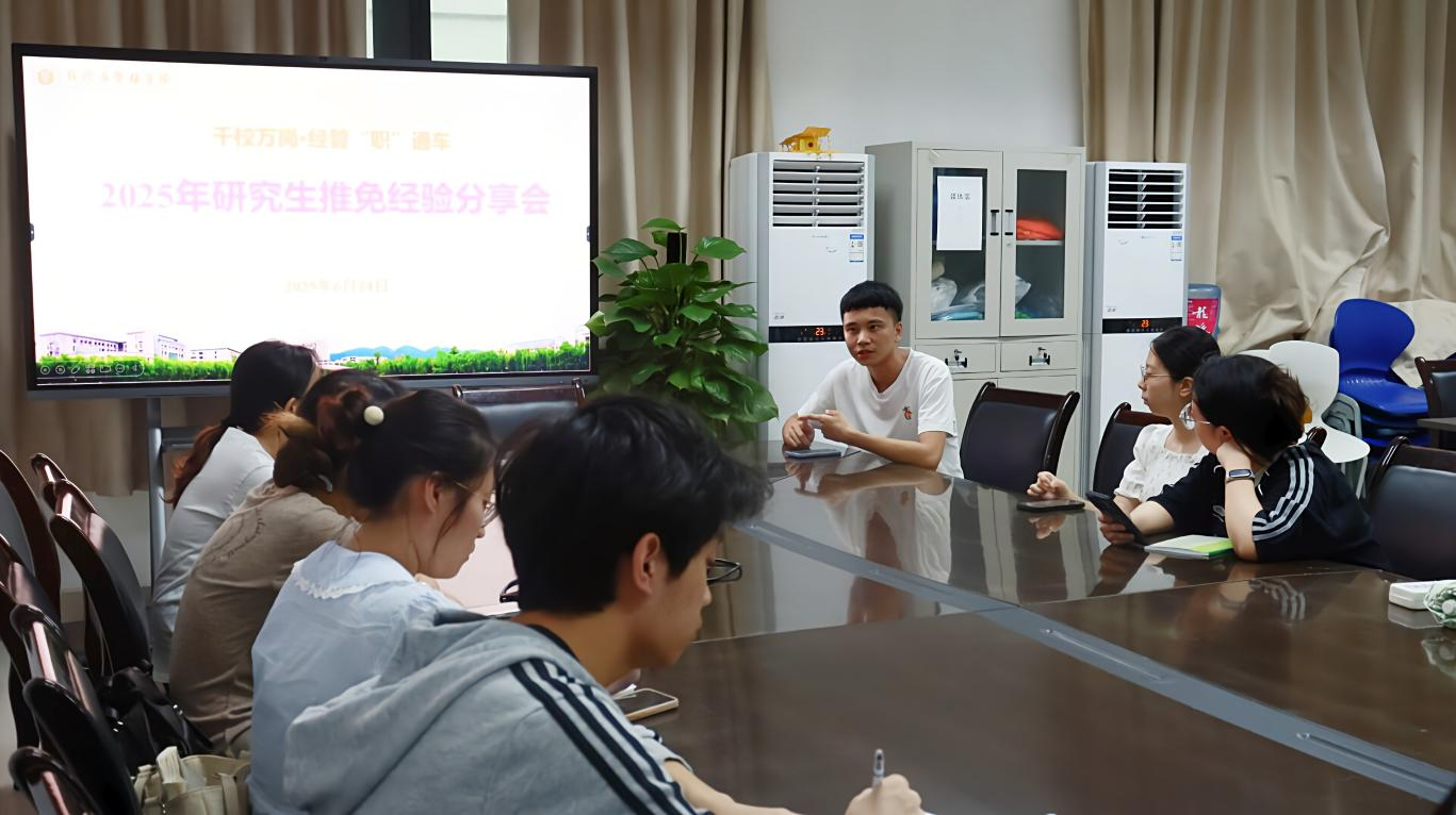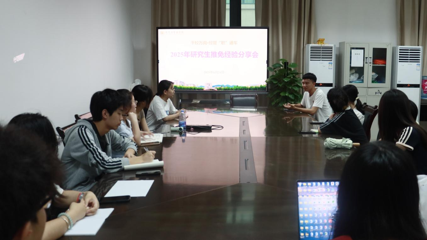 为充分发挥榜样引领作用,帮助低年级本科生了解研究生推免相关工作,做好学业规划,助推优良学风建设,6月24日,2138cc太阳集团于求是楼316举办2025年研究生推免经验分享会。本次活动特邀我院2021级人力资源管理专业推免至西南石油大学的张宝担任分享嘉宾,12名有推免意向的学生参与此次分享会。