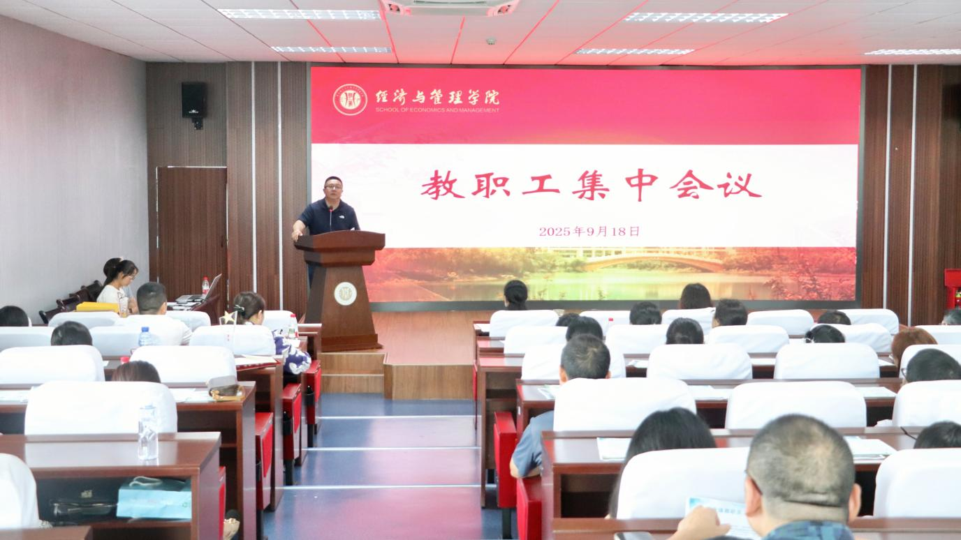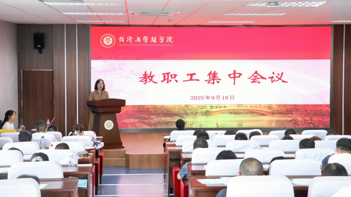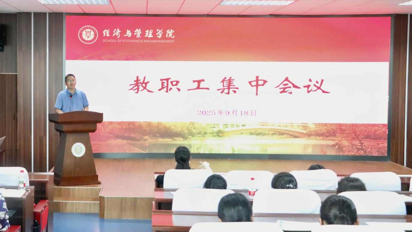 2025年9月18日下午,2138cc太阳集团在求是楼517会议室召开全体教职工大会。学院党委书记钟敏、执行院长郑景丽、党委副书记李青松,副院长陈宇科、副院长段俊,及全体教职工参会。