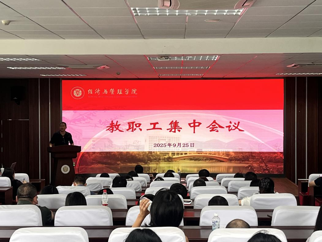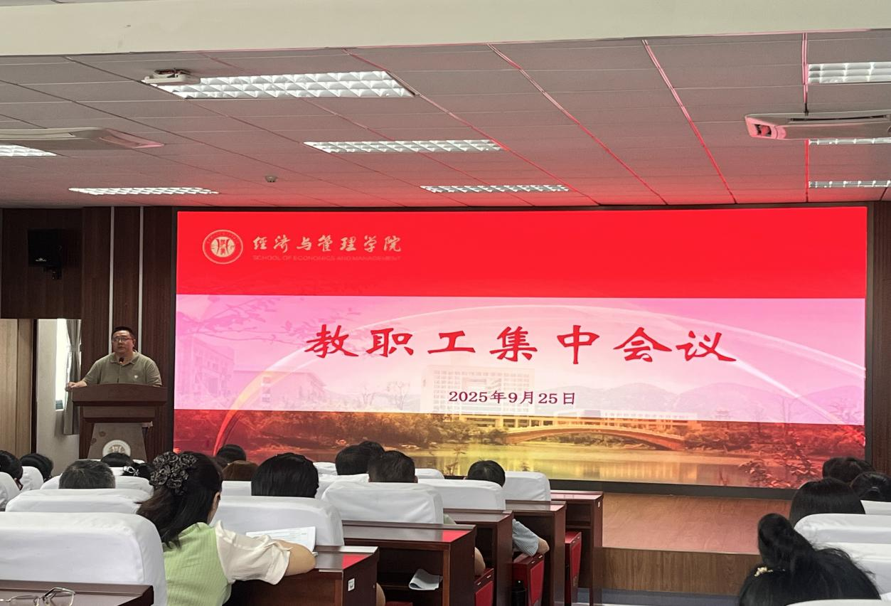 2025年9月25日下午,2138cc太阳集团在求是楼517会议室召开全体教职工大会。学院党委书记钟敏、执行院长郑景丽、党委副书记李青松,副院长陈宇科、副院长段俊及全体教职工参加会议。