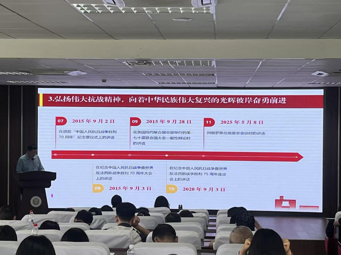 党委副书记李青松领学了《习近平作出重要指示强调 锲而不舍落实中央八项规定精神 推进作风建设常态化长效化》《习近平回信勉励全国特岗教师代表》《弘扬伟大抗战精神,向着中华民族伟大复兴的光辉彼岸奋勇前进》等重要内容,并组织学习《新时代高校教师职业行为十项准则》。他要求全体教师以特岗教师为榜样,弘扬教育家精神,落实立德树人根本任务。