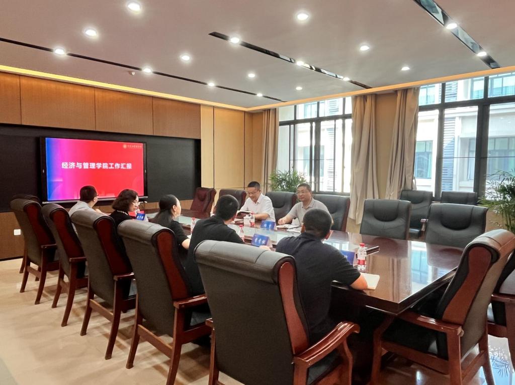 经济与管理学院执行院长郑景丽就学院事业发展情况进行了专题汇报。郑景丽表示,学院将紧扣申博目标,夯实人才与师德基础,增强学科建设与社会服务动能,全力推动事业高质量发展。
