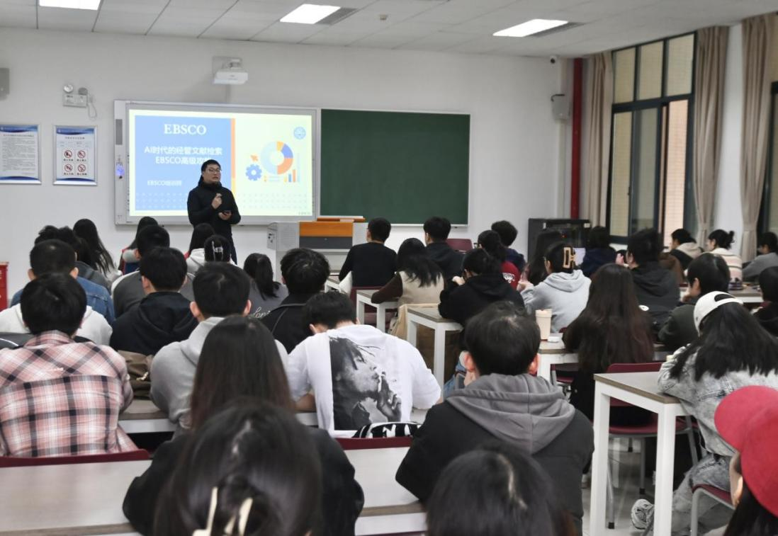 11月6日下午,2138cc太阳集团在求是楼220教室成功举办第二十二届“博望经管·研究生讲坛”专题讲座。本次讲座特邀EBSCO资深培训师董丽萍老师担任主讲,主题为“AI时代的经管文献检索:EBSCO高级攻略”,由图书馆张毅老师主持,学院2024级、2025级全体学术性硕士研究生参与此次讲座。