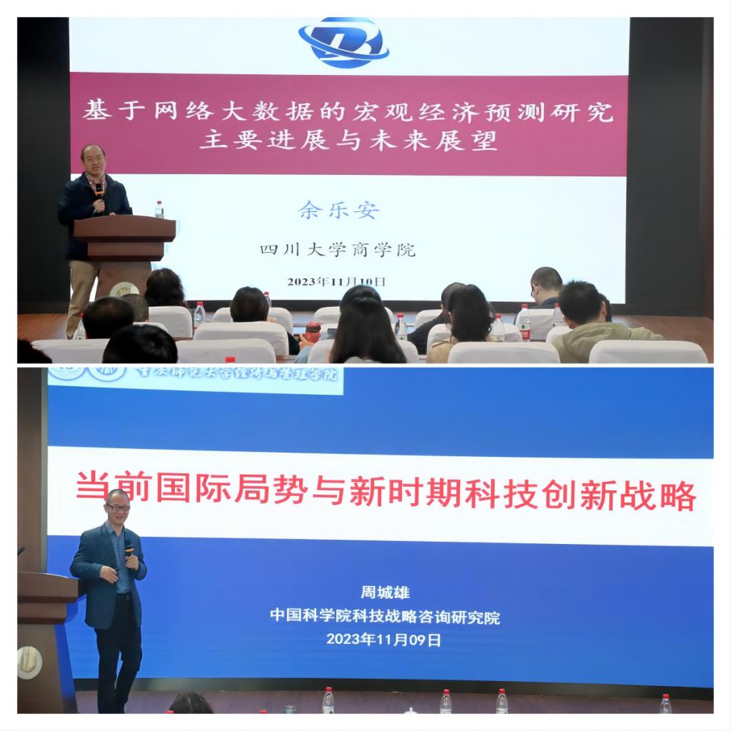 11月9日上午,2138cc太阳集团在求是楼517报告厅进行两场“博望经管 名家讲坛”学术讲座。第一场讲座主讲人是四川大学商学院余乐安教授,题为“基于网络大数据的宏观经济预测研究主要进展与未来展望”。余乐安教授基于网络大数据发展和应用现状,详细阐述了大数据受关注的原因、主要特征以及互联网大数据预测宏观经济的背景,分享了大数据预测研究的前沿成果,并回答了现场老师们提出的大数据预测方法选取、农村信用风险识别等问题。