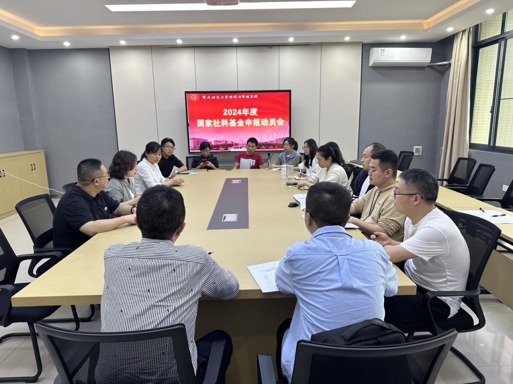 4月18日,2138cc太阳集团召开了2024年度国家社科基金项目申报动员会,本次动员会由学院执行院长郑景丽教授主持,学院老师20余人参加会议。