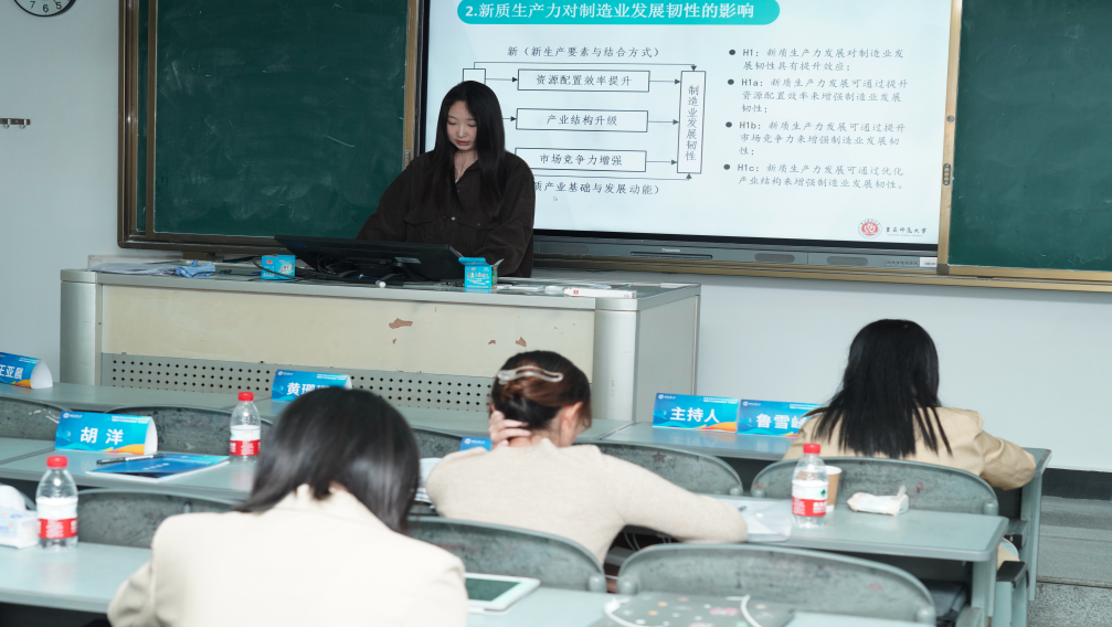 我院2023级产业经济学专业研究生樊春蕾同学受邀参会并作题为“新质生产力与制造业发展韧性关系”的学术报告,报告基于新质生产力与制造业发展韧性相统一的理论框架,探讨新质生产力发展对制造业发展韧性的非线性影响效应,以及新质生产力影响制造业发展韧性的资源配置效率提升、市场竞争力提升和产业结构优化路径,提出要遵循以制造强国发展战略需求为导向,以科技创新为核心等思路来充分发挥新质生产力对制造业发展韧性的提升功能。