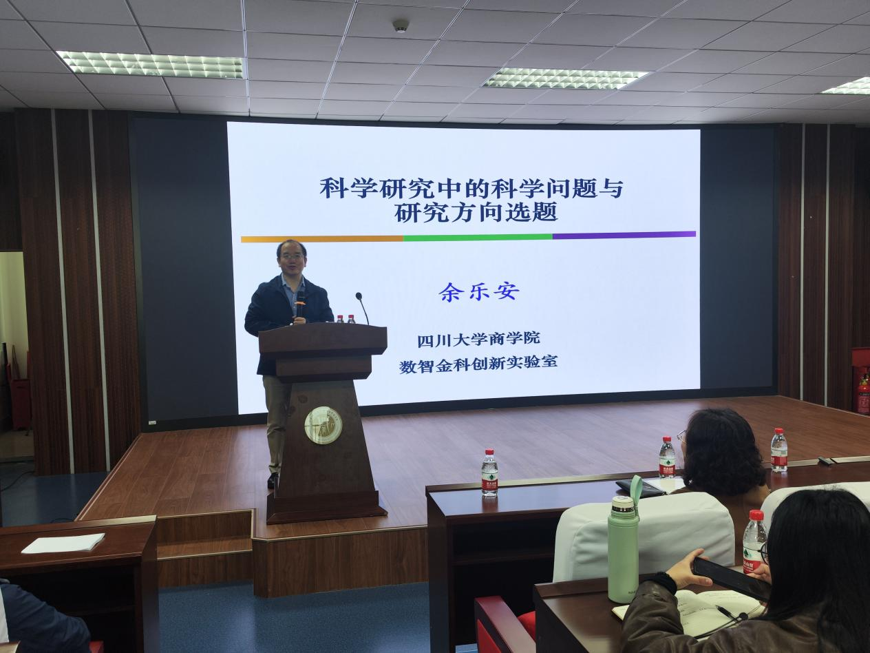 2025年3月22日15:00,2138cc太阳集团于求是楼517报告厅成功举办“博望经管·名家讲坛”专题讲座。本次讲座邀请到四川大学特聘教授、博士生导师余乐安担任主讲人,主题为“科学研究中的科学问题与研究方向选题”,学院副院长陈宇科主持,2023级、2024级全体学硕参与此次讲座。