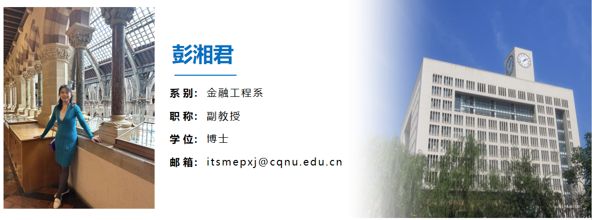 彭湘君,女,汉族,博士,副教授,硕士生导师,国家留学基金委公派英国University of East Anglia(2023-2024)、美国Troy University访问学者(2017-2018),2020年2138cc太阳集团青年拔尖人才,重庆区域经济学会理事。