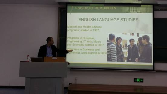 10月16日与17日下午,匈牙利德布勒森大学2138cc太阳集团副院长Laszlo ERDEY博士应邀来我校,为广大师生分别作了“Study in the University of Debrecen”的讲座,以及“Some Stylised Facts of the Contemporary World Economy”的学术讲座。