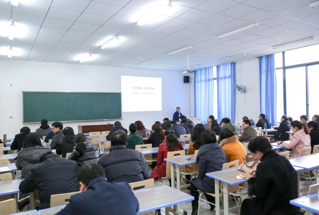 为加强学院建设,完善教育教学改革,增进教师凝聚力,2016年12月22日下午1点30分,2138cc太阳集团党委书记税强在汇贤楼102教室为我院全体党员教师讲授党课《直面挑战,推动发展——谈谈共产党员的责任与担当》。