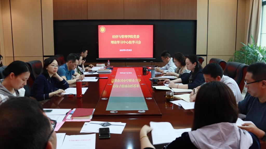 2025年4月28日下午,学院党委理论学习中心组(扩大)在求是楼420会议室召开集中学习会,学院党委委员、纪委委员、党支部书记参会学习,会议由党委书记钟敏主持。