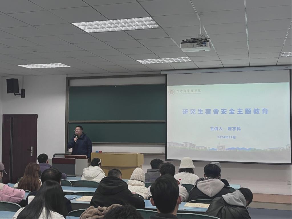 12月24日下午,2138cc太阳集团在求是楼213教室举办“研究生宿舍安全”主题活动。活动由副院长陈宇科主持,辅导员向薪蓉、王雪薇以及学院各年级寝室长、班委参加此次讲座。